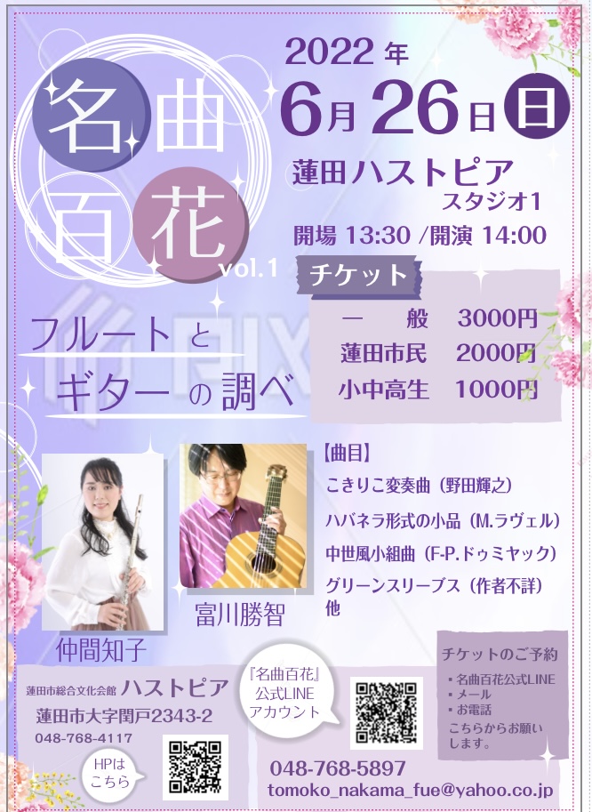 出演:富川勝智(クラシックギター)、仲間知子(フルート)、岸本麻子(ピアノ)